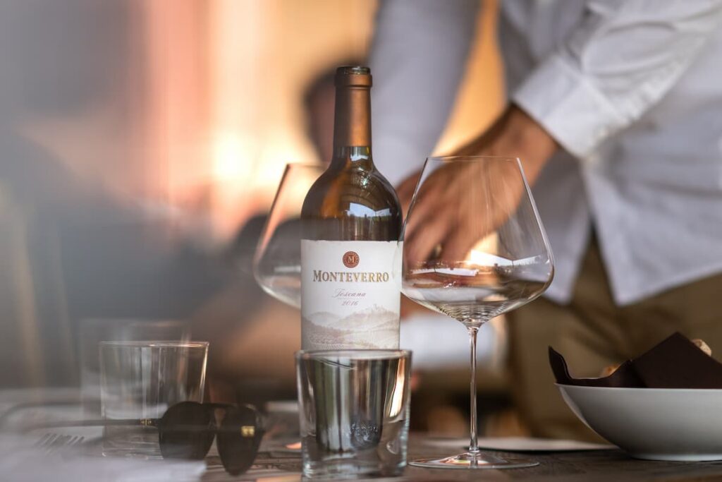 - Monteverro (旗艦紅酒): 這是托斯卡納風土與波爾多品種(Cabernet Sauvignon, Cabernet Franc, Merlot, Petit Verdot)的完美結合 。2021 年份展現了清新的中調,黑醋栗與黑莓香氣為主軸,餘韻帶有櫻桃核與黑橄欖的細微氣息,結構精準且平衡 。