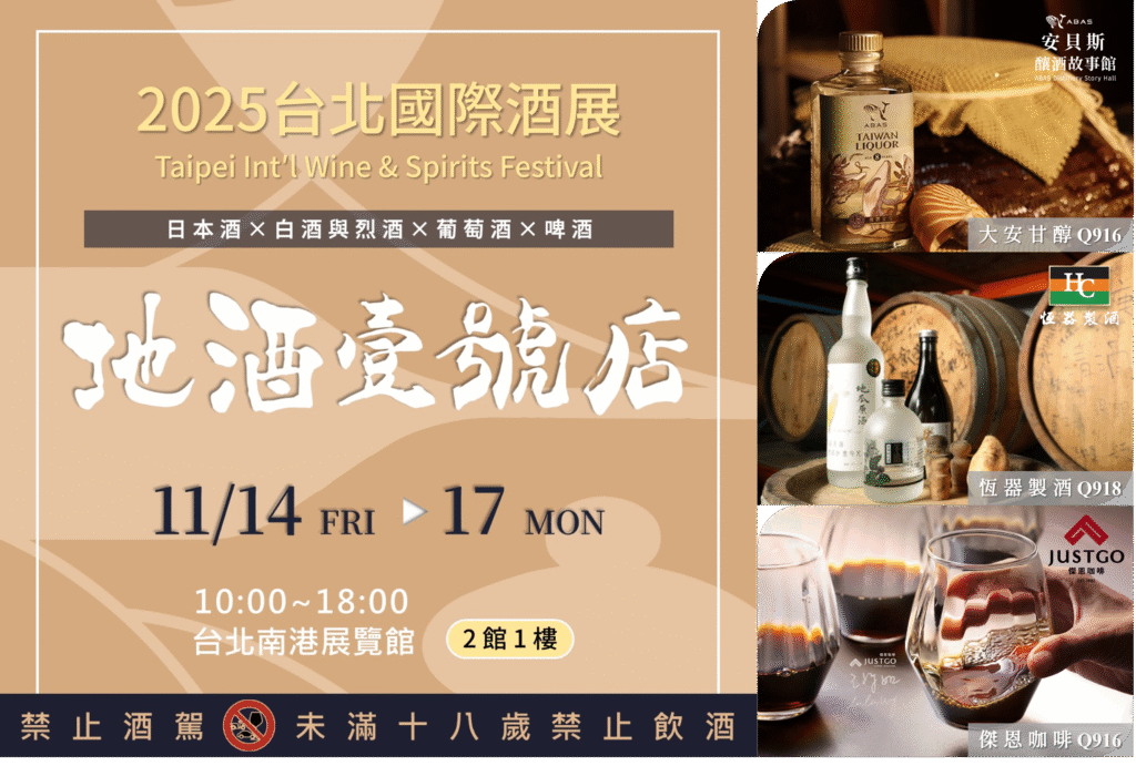 11月14~17日在臺北南港展覽館內瀰漫一股微醺的鄉村氣息,這是由農業部農村發展及水土保持署臺中分署策畫的「天茶地酒」專題,於 2025 臺北國際茶酒咖啡展正式揭幕。此次展覽中「地酒壹號店」主題區綻放農村風土魅力,以在地農產釀造的酒款為媒介,讓都市人能於都市展場中體驗農村釀造文化的深厚底蘊。