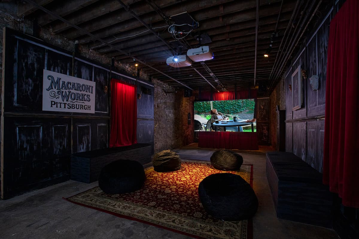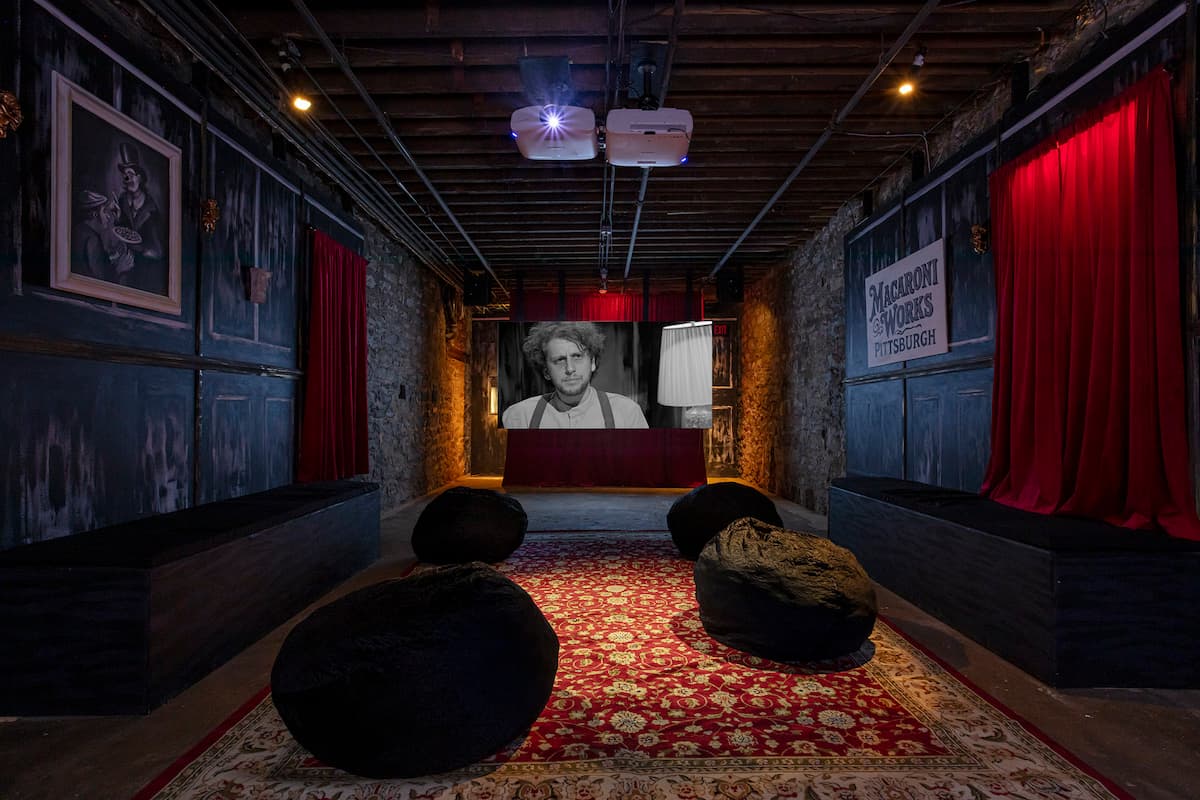 來自台北的藝術家張碩尹於 2024 年走訪匹茲堡期間,了解到該地在美國勞工運動史上的重要角色。他特別受到 1892 年「霍姆斯特德罷工事件」(Homestead Strike)的觸動——這場工人與亨利・克雷・弗里克(Henry Clay Frick)所雇用的平克頓偵探之間的暴力衝突,凸顯出當時勞資之間的權力失衡。他從這段歷史汲取靈感,並融合床墊工廠美術館自身工業與文化生產交疊的歷史脈絡,與在地電影創作者 Alex Abrahams 與 Benny Shaffer 合作,發展出一個多重線索交織的敘事,最終虛構出一部通心粉工廠內的謀殺懸疑片。