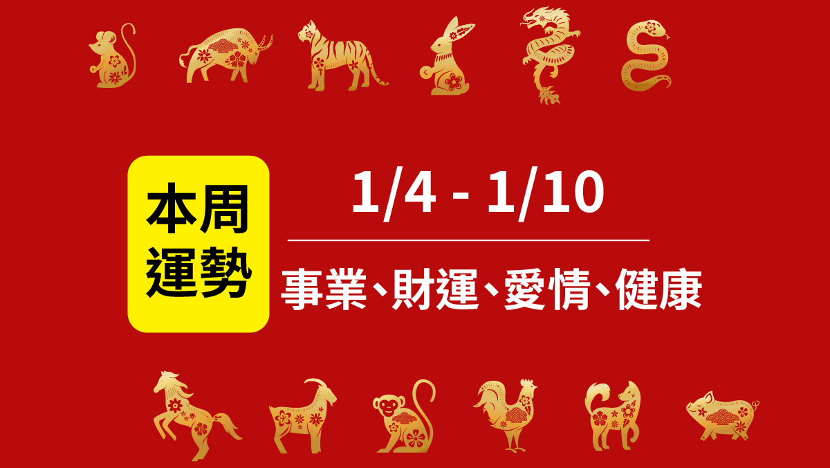 財運:本周財運翻升,新年新氣象,新的思維,新的開創,與人為貴,把市場的餅做大,大家都能財源廣進。